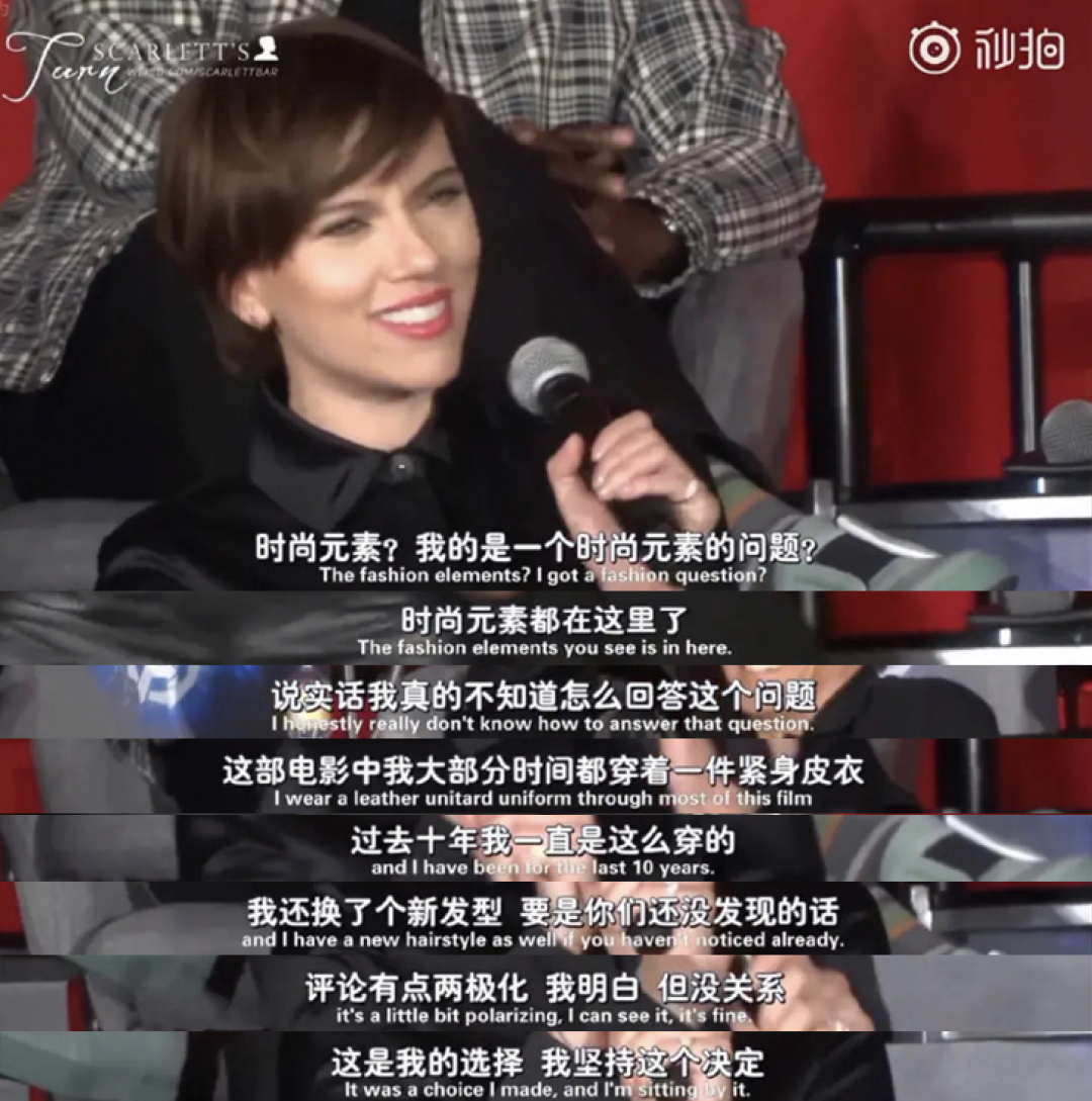 別的超級英雄拿到的問題都既有趣又深刻,問到寡姐就變成了“你是怎麼保持身材的”。