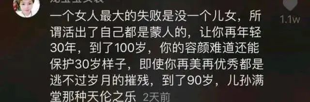 還有楊麗萍吃火鍋的視頻底下,高贊評論充滿惋惜:“一個女人最大的失敗是沒一個兒女,所謂活出了自己都是懵人的。”