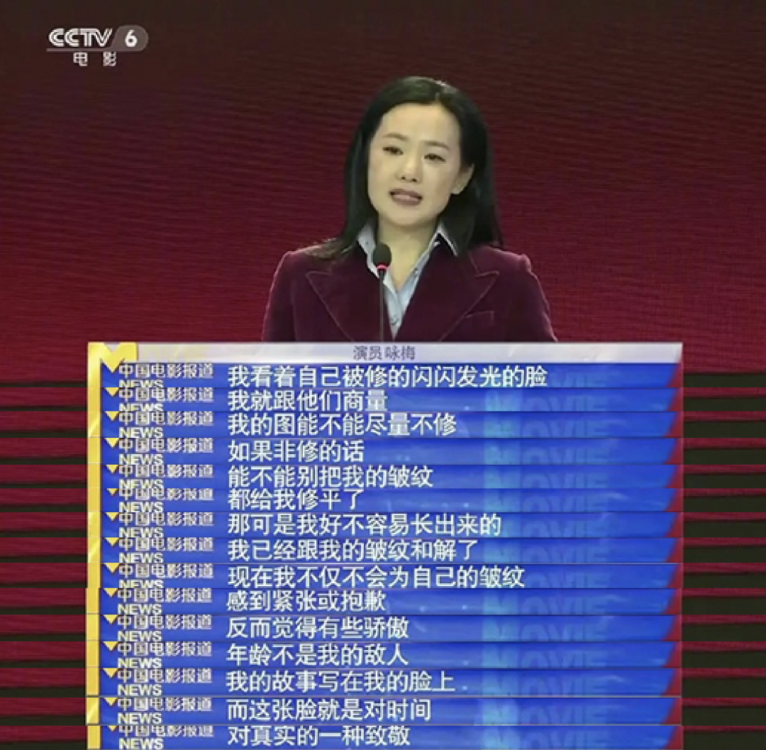 於是她在領金雞獎盃時,發表了那段經典的「不修圖」宣言: