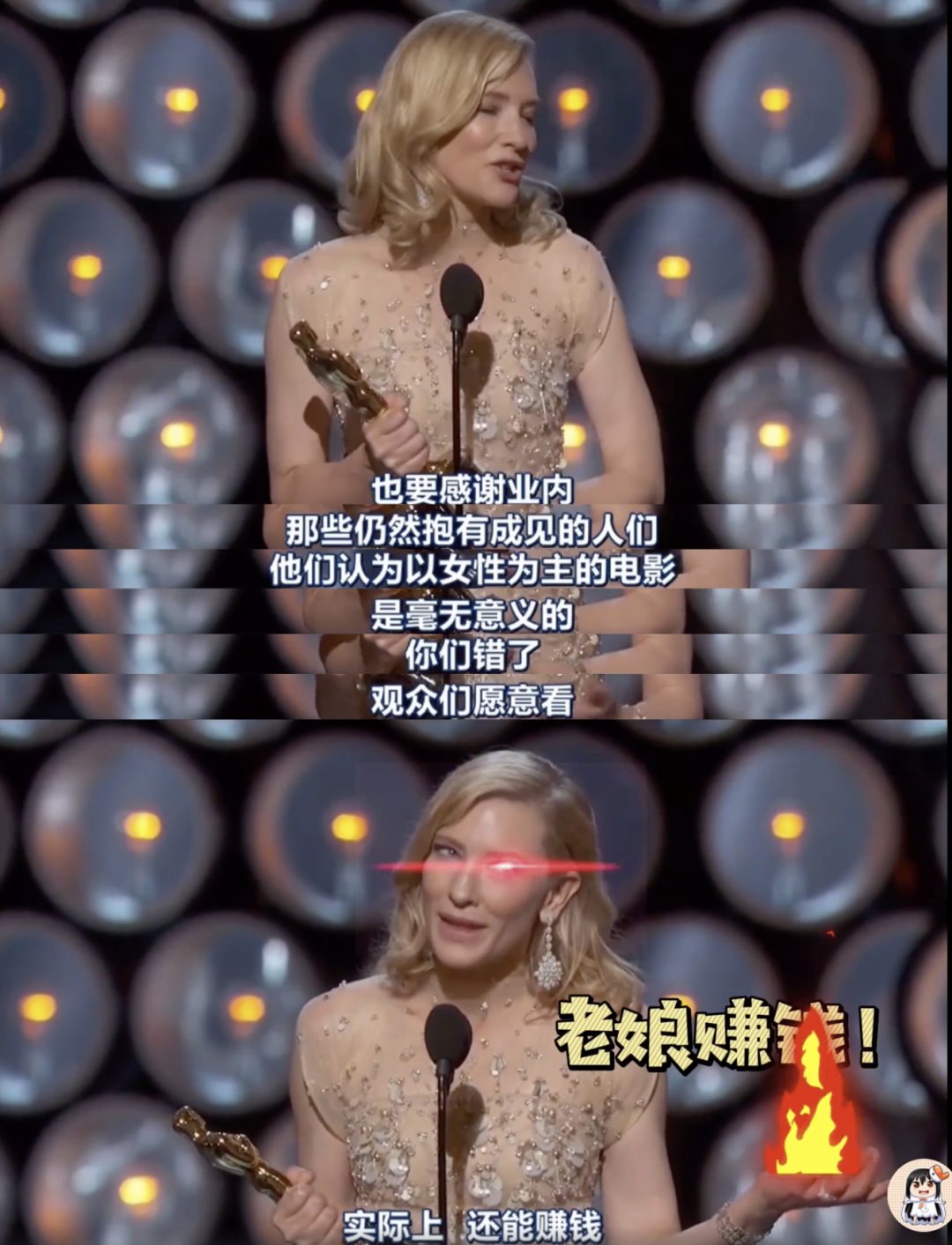 大魔王凱特·布蘭切特在奧斯卡領獎台上,因《藍色茉莉》拿到最佳女主,她説:
