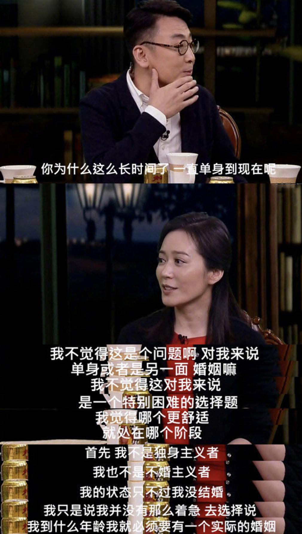 “我不是獨身主義者,也不是不婚主義者,只是我並沒有着急去做選擇。也不是到什麼年齡就必須要有一個實際的婚姻。”