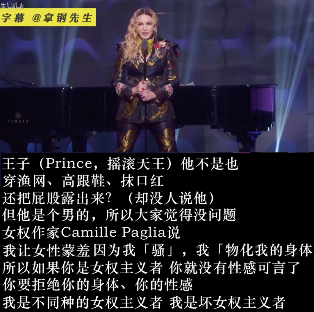 2016年,麥當娜拿下billboard榜的年度女性獎,她發表一長段很有力量的演講: