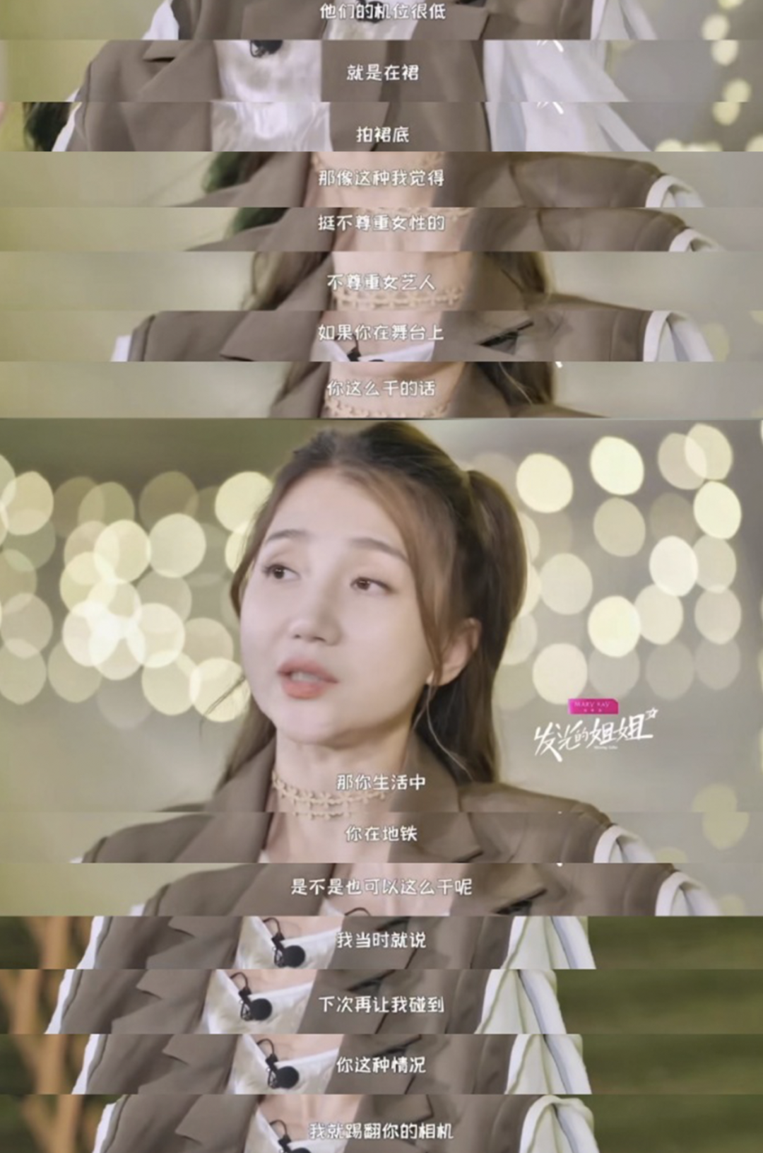 “他們的機位很低,就是想拍裙底。這挺不尊重女性,不尊重女藝人的。我當時就説下次再讓我碰到,我就踢翻你的相機。”