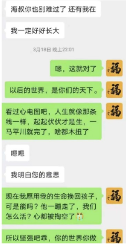 一些孩子看完後給他回消息,“叔叔,我看完決定不死了,謝謝你叔叔”,還有個女孩告訴他,“我要是死了,我的父母可能和叔叔你目前的狀況是一樣的。”