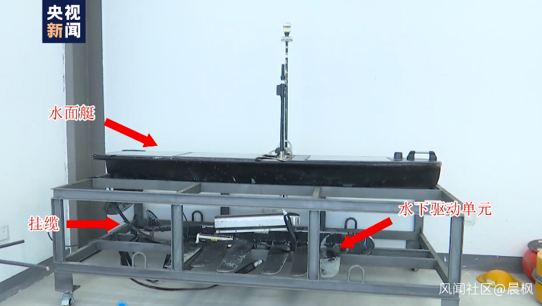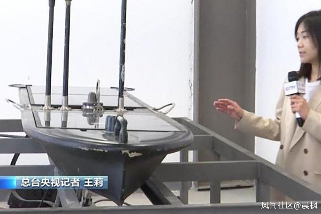 在不久前“國家安全日”電視節目裏,一艘神秘的無人艇引起人們的注意。這個無人艇不僅鋪蓋着太陽能電池板和安裝着信息桅杆,還在艇底拖帶着一個魚雷一樣的東西。這是新穎的波浪滑翔機。