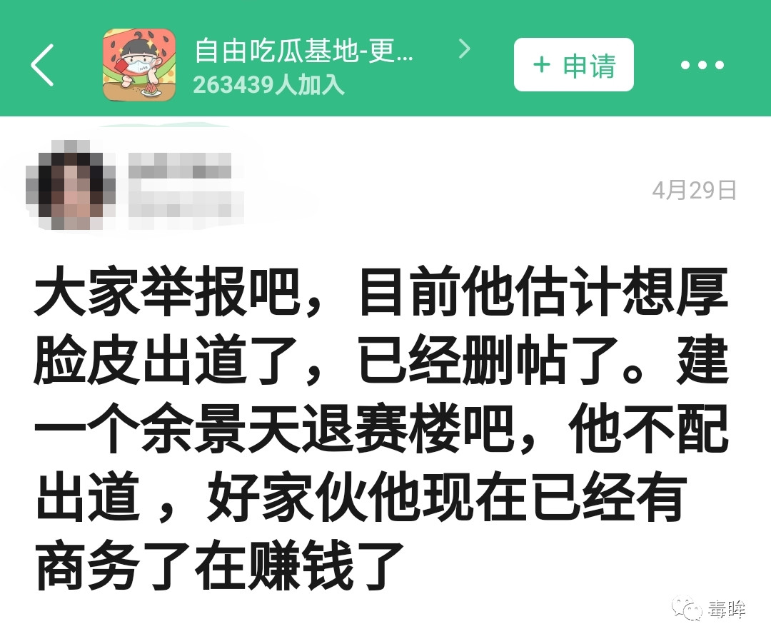 與餘景天情況有些類似的,還有《創造營2021》的選手周柯宇。4月20日,有網友爆料周柯宇父親周武軍疑似開設傳銷公司,騙錢後出國,並附上了不少受害人尋人討薪的言論截圖。