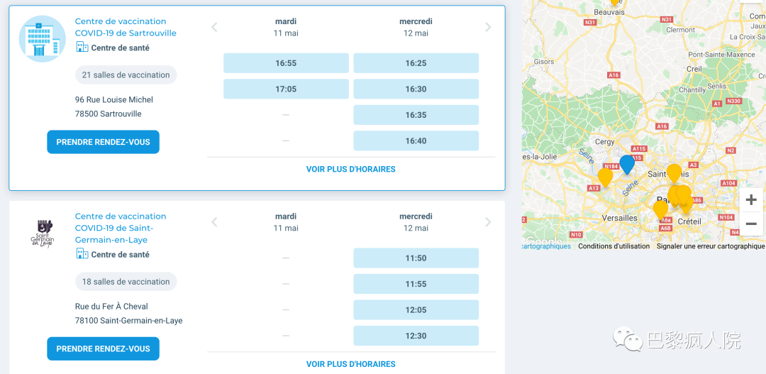 再然後,就可以查看到,在你的地址附近目前所還可以預約的第二天的RDV啦!