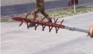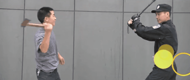 不僅如此,若遭遇手持較長刀具的暴恐分子,該組合式警棍還可將兩根警棍進行組合加長,總長度可達到158cm,再將攻擊部的三稜軍刺端朝外,從而達成“終極形態”:三稜矛!