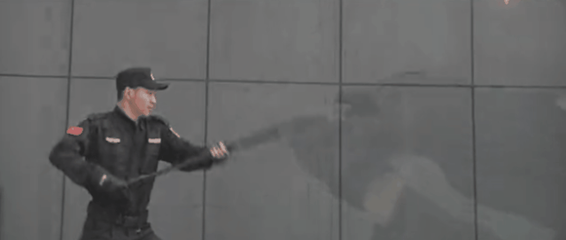 其次,在一些重要地區,還有一款鮮為人知的防暴武器叫做組合式警棍。平時在廣場上巡邏的神秘黑衣人背上的黑色長條收納袋裏裝的就是這傢伙。