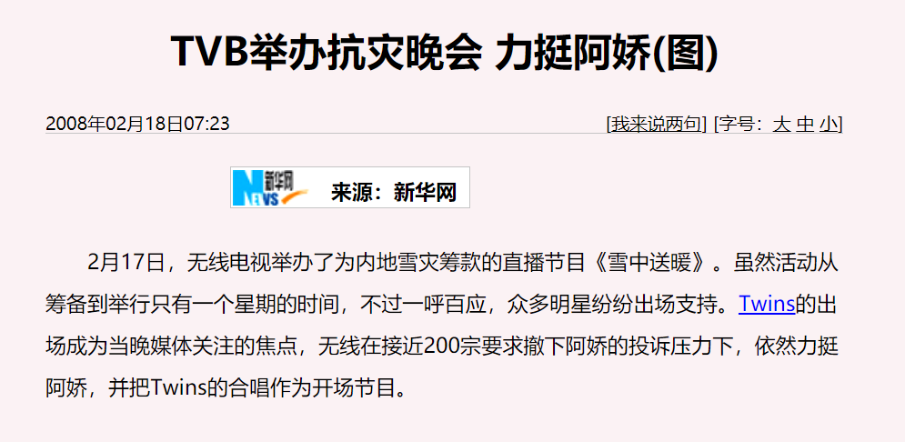 參加TVB“雪中送暖”賑災晚會,當晚投訴阿嬌的信件多達200多封。