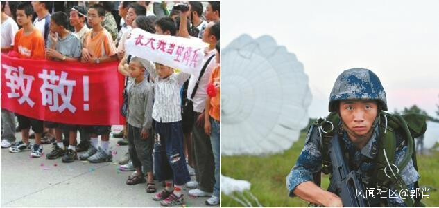 15名空降兵,冒着生命危險,從近5000米高空縱身一躍,空降震中地帶,搭建起信息通道。那是一場無氣象資料、無指揮引導、無地面標識的“三無”空降,對空降兵來説,無異於生死“盲跳”。