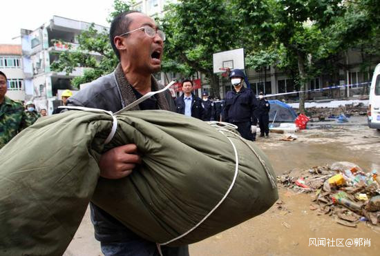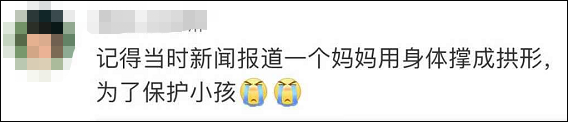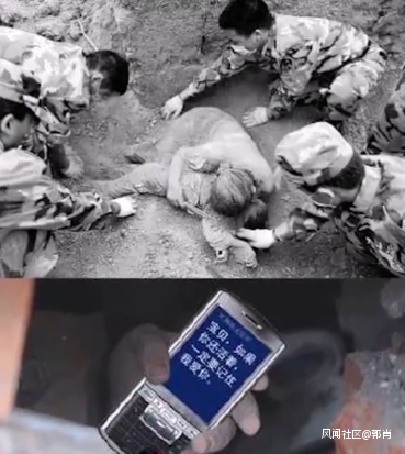 救援人員發現一對母子時,母親一直維持着“雙膝跪地,雙手護着孩子的頭”的姿勢,早已沒了呼吸,孩子卻毫髮無傷,救援人員在孩子的包裹裏還發現了一條未發出去的短信,“寶貝,如果你還活着,一定要記住我愛你。”