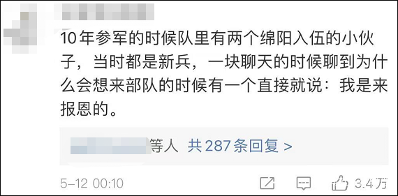 北川中學學生李陽在武警官兵的幫助下救助了自己的同學,大三時參軍入伍,他説要當個好兵,為家鄉人民爭氣。