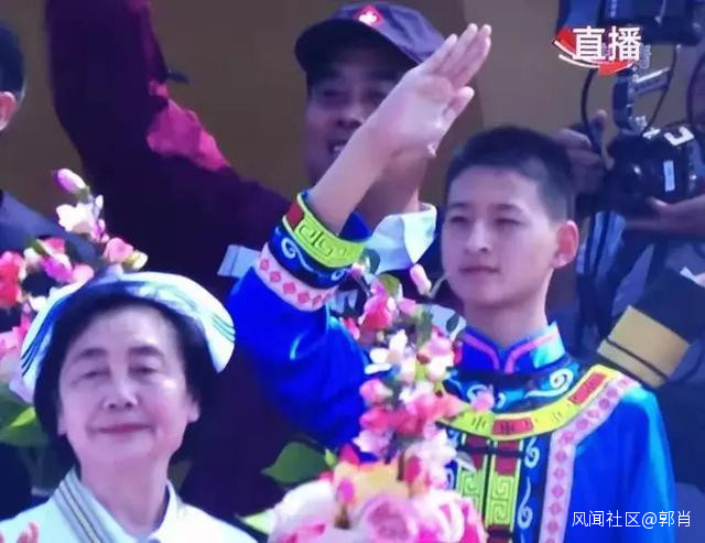 2019年國慶,“敬禮娃娃”郎錚還出現在了“眾志成城”彩車上,參加國慶羣眾遊行。
