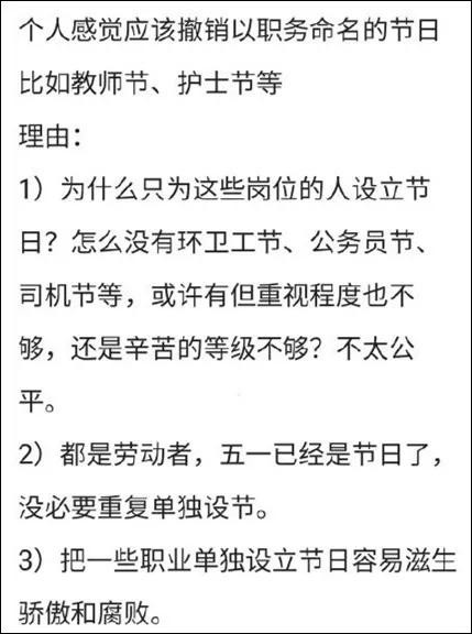 一些網友對於取消護士節的議論 圖源:評論截圖