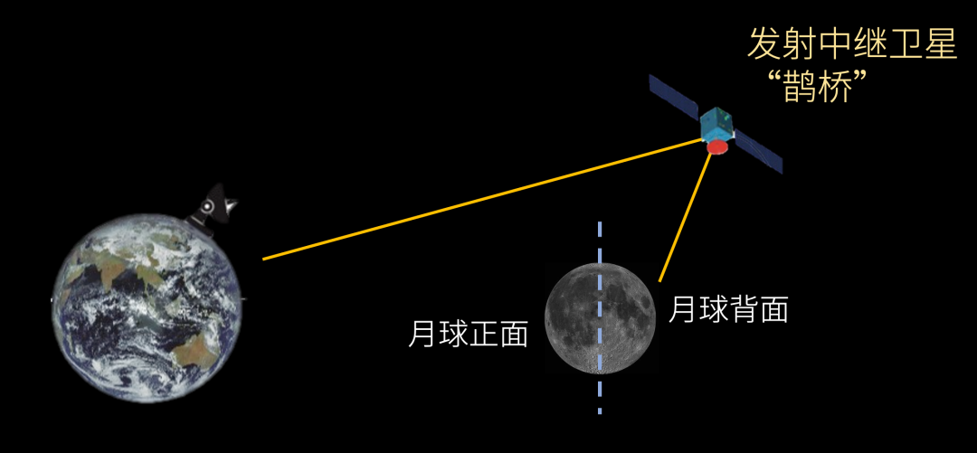 那麼我們和月球背面的通信是怎麼建立的呢?當時我們的科學家們和工程師們反覆思考,最後還是採用了一個比較經典的方案,就是在月球附近佈設一箇中繼衞星,然後把這個中繼衞星作為連接地面和月球背面的一個通信基站,我們給它起了一個浪漫的名字——“鵲橋”。
