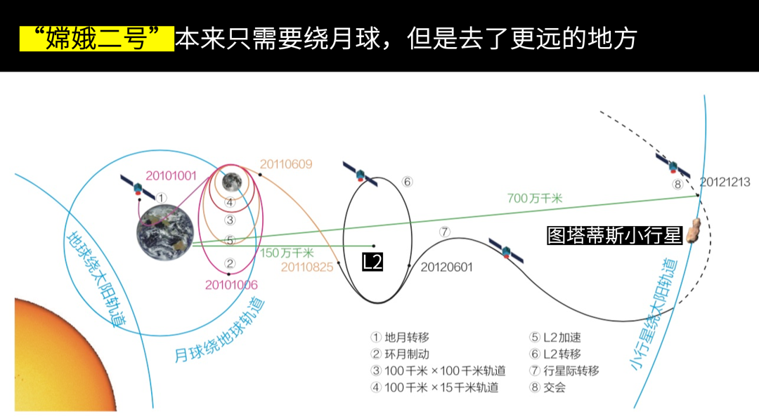 隨後我們又控制它飛行了700萬公里,與圖塔蒂斯小行星進行了一個交會實驗。科學家一般形容我們這個實驗的難度就像是在操控兩顆萬米高空飛行的子彈。
