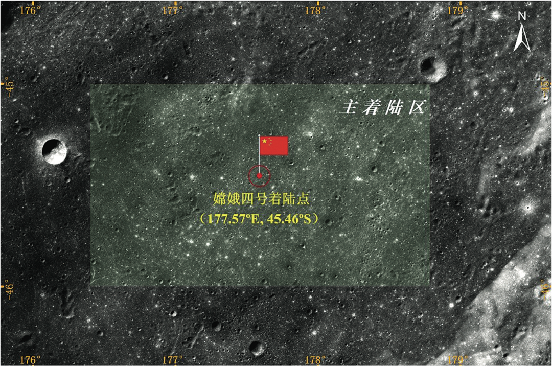 最終在2019年1月3日10點26分,“嫦娥四號”探測器在“鵲橋”中繼衞星的支持下,還是成功着陸在月球背面南極-艾肯特盆地的馮卡門撞擊坑內。那個紅旗就是它落的地方,距離中心區域最終也就差了一點幾公里。