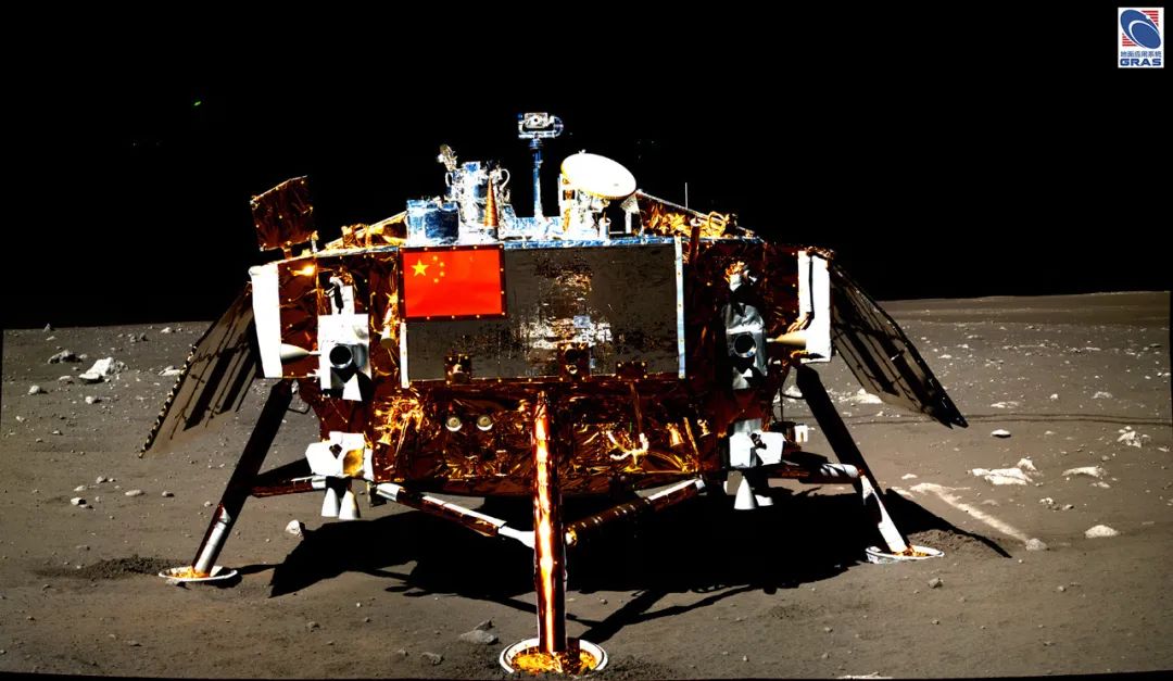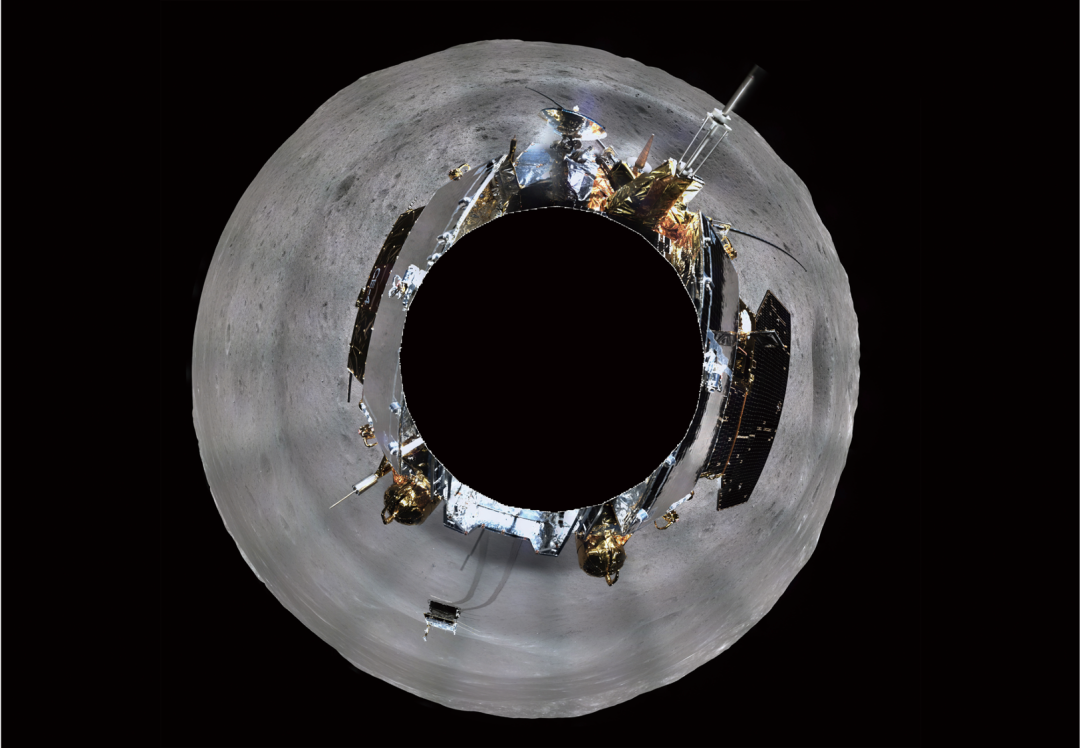 這是它落到月背以後,着陸器上的地形地貌相機對周圍的環境進行的360度環拍,中間的黑色區域是它自己(因為它拍不到自己)。