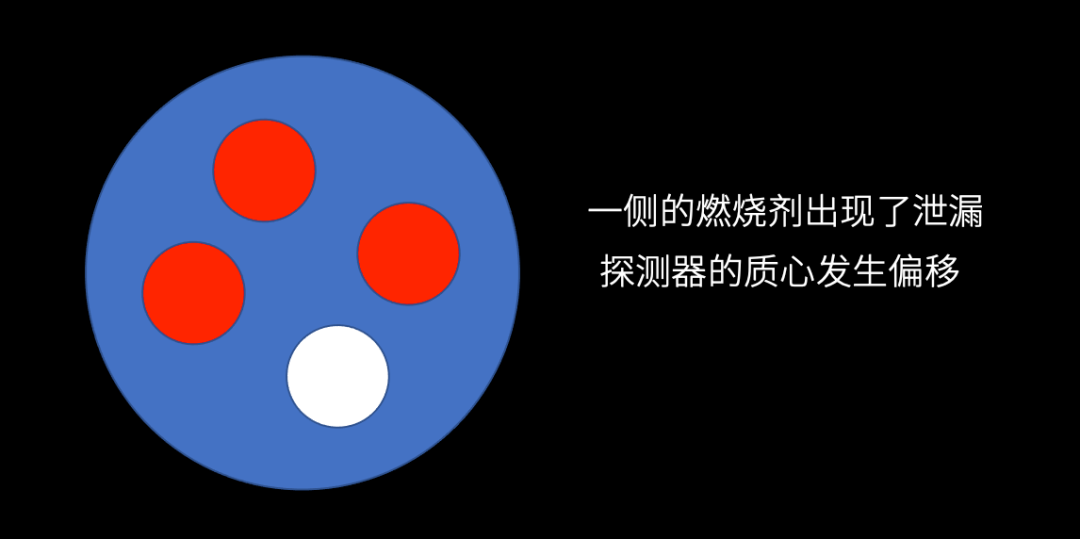 它漏的時候不是四個燃料箱都漏了,而是漏了右下方的這一個,也就是説漏完之後,整個探測器它是一個一邊輕一邊重的狀態,是不平衡的。