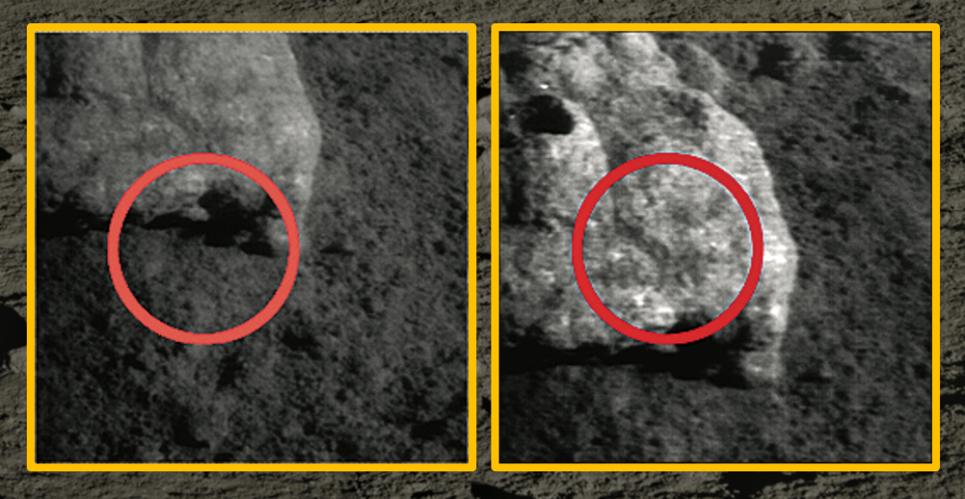 最後大家一釐米一釐米地往前靠,在離石頭特別近的地方,用一個紅外相機和可見光相機,對這個石頭進行了一個高精度的成像。