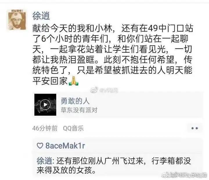 此外,我想對廣大網友説一句,熱血、善良、有同情心、有正義感是好的,追求真相也是好的,質疑學校、社會、警方也沒有問題,我們的國家並不是不允許質疑,不允許批評。