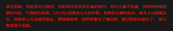 而且監控也不是她去看的,而是她老公去看的,看完了渾渾噩噩,説是忘記了看到什麼了。