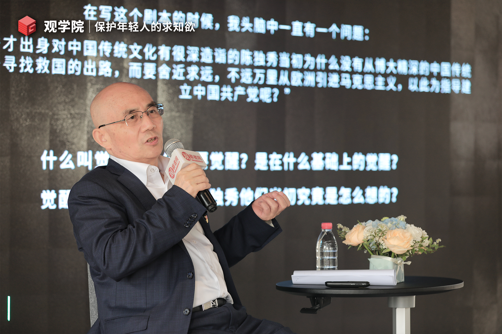此前的4月25日,《覺醒年代》編劇、原中共中央文獻研究室第三編研部主任龍平平,帶着劇中扮演陳延年、陳喬年烈士的兩位青年演員,曾做客由復旦大學中國研究院、觀察者網主辦的“觀學院”活動。龍平平以“偉大復興的奠基禮”為主題,向我們講述了創作這部劇的幕後故事。觀察者網重發演講內容,祝賀《覺醒年代》摘得桂冠。