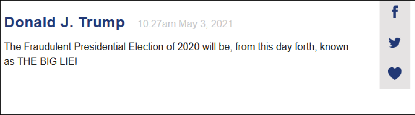 特朗普在其“單向交流平台”上稱2020年大選是“最大的謊言”