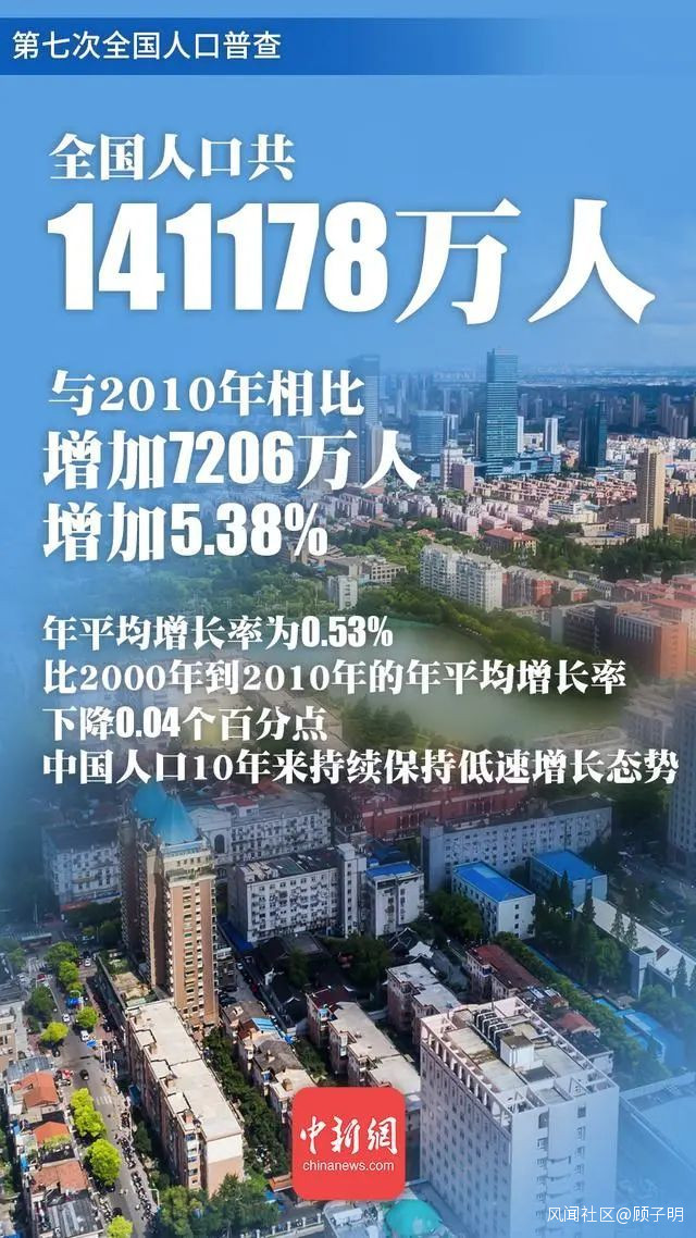 今天,萬眾期待的第七次全國人口普查結果公佈,全國人口共141178萬人。