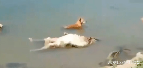 最讓人倒吸一口涼氣的,莫過於這浮屍遍野的水裏,居然出現了一隻野狗,
