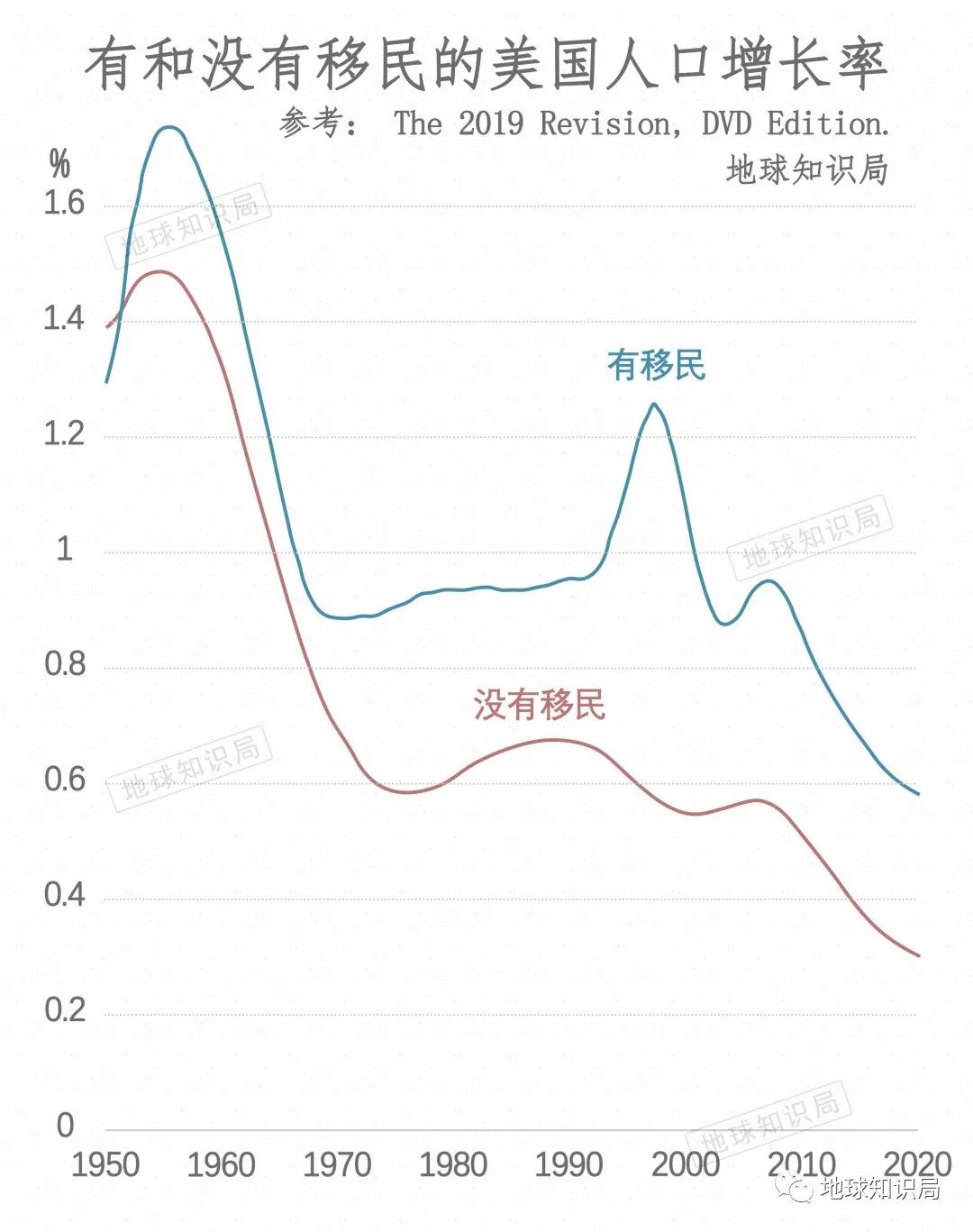 作為一個對移民較為開放的移民國家,美國的人口增長由國際移民和人口自然增長兩部分構成。如今人口增速放緩的問題,也是由這兩部分因素共同決定的。