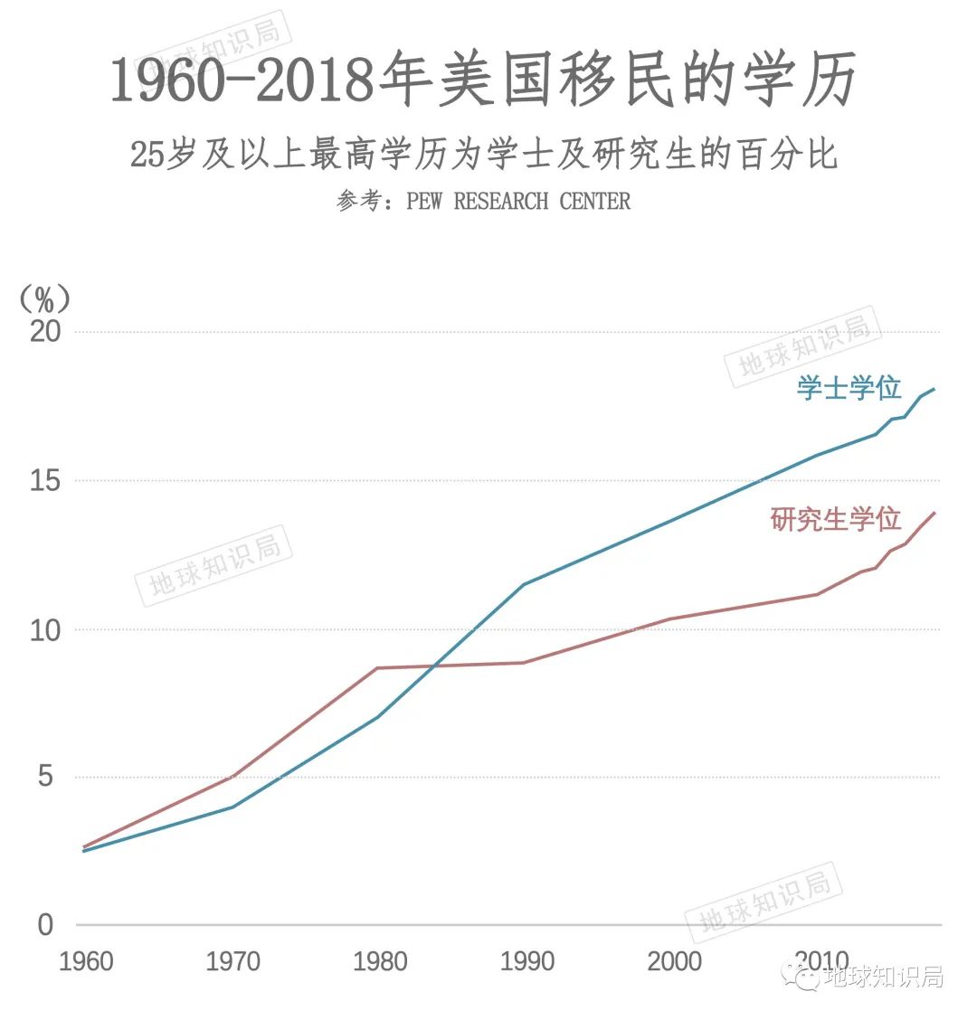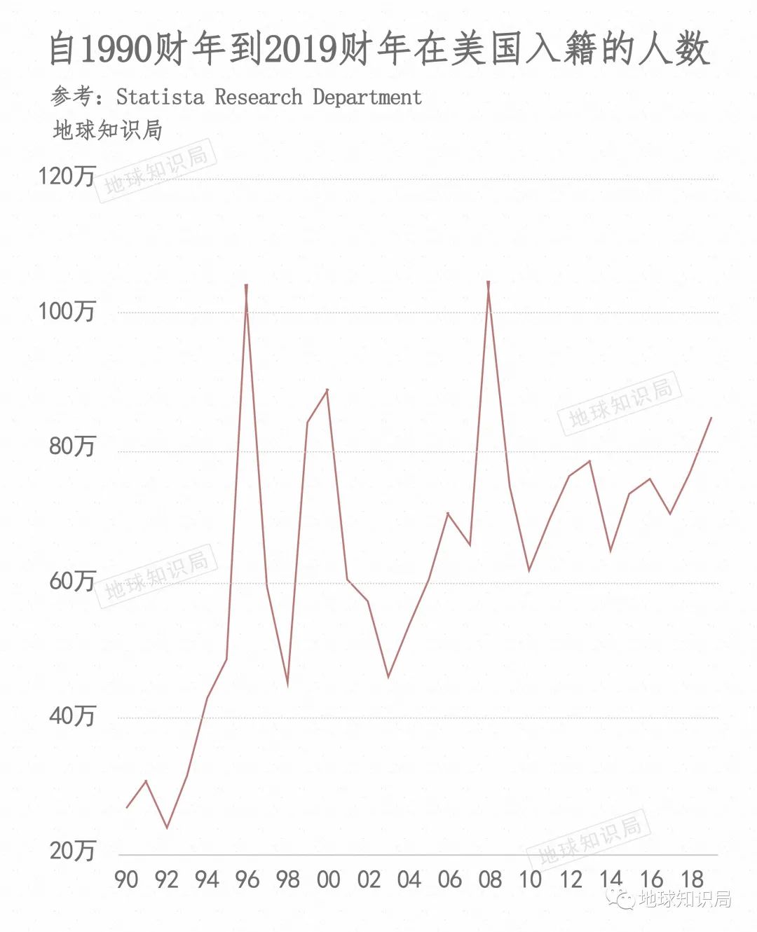 截至2019年時,移民人口占美國人口總數的13.6%,幾乎是1970年的3.7倍。雖然今天美國的移民數量佔總人口數比例仍然低於1890年創紀錄的14.8%,但是如今的移民給美國帶來的衝擊卻比人們想象中要大得多。