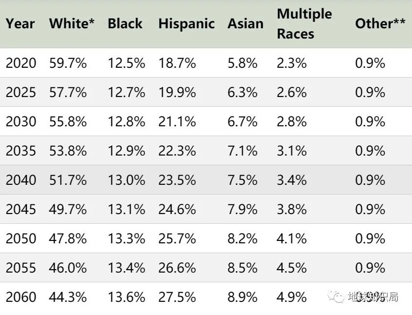 美國不但人口生育率在降低,另一個值得注意的趨勢在於,美國的族裔比率正在發生潛移默化的改變。
