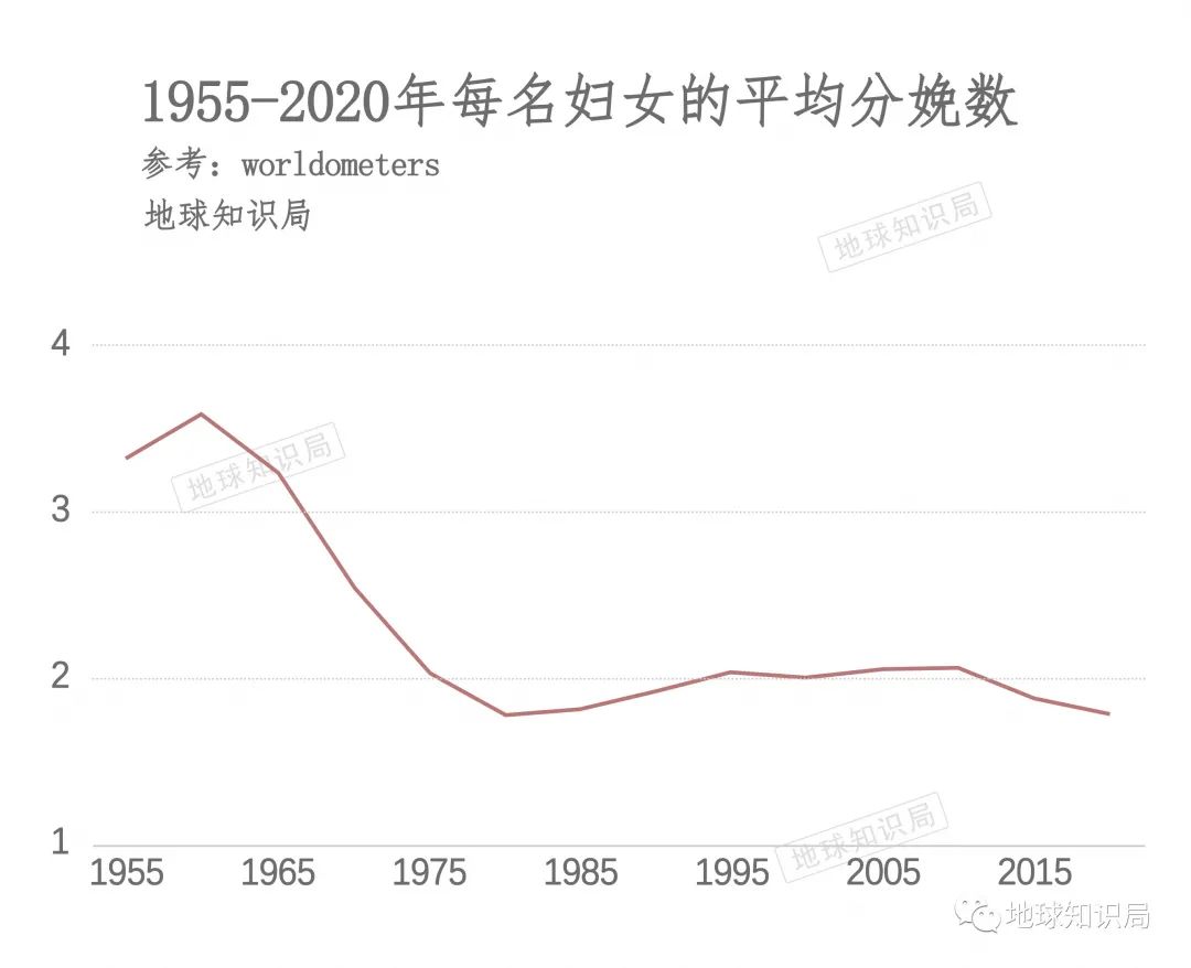 生育率隨着城市化、現代化的進程而一路走低,似乎是一個全球性的問題,不論西歐發達國家,還是後發的東亞國家都是如此。甚至連刻板印象中人口快速增長的印度,生育率都從上世紀70年代起快速降低,已經下跌至2.2,即將跌破2.1的替代生育率。