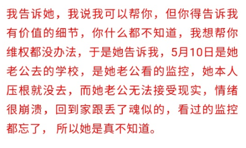 5 月 10 日當天,林媽媽並沒有去學校,是林爸爸去學校看的監控,並和學校領導談了 6 個小時,由於林爸爸的情緒很崩潰,所以忘記到底看到了什麼。。。