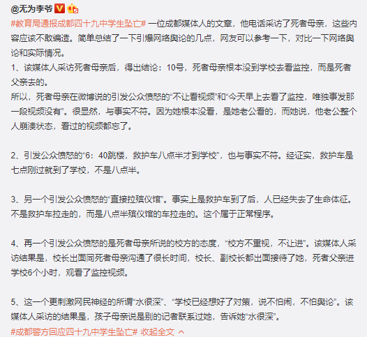 這兩天,成都中學學生的墜樓事件,成為了各大網絡平台討論熱度最高的話題。