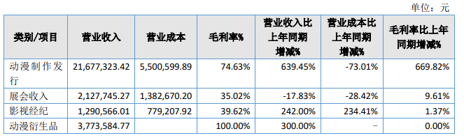 傑外動漫主營動漫視頻授權、IP商業化授權以及IP主題展覽、周邊產品銷售等其他動漫相關業務。