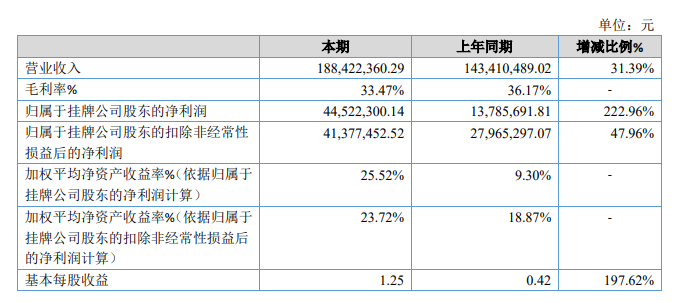 2020年,北京傑外動漫文化股份有限公司(以下簡稱傑外動漫)營業收入1.88億元,同比增加31.39%;歸屬於掛牌公司股東的淨利潤4454.23萬元,同比增加222.96%。