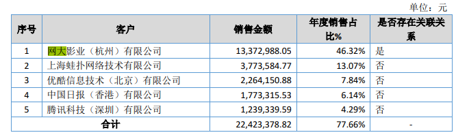 網大影業(杭州)有限公司也是喜悦娛樂2020年的第一大客户和第一大供應商。