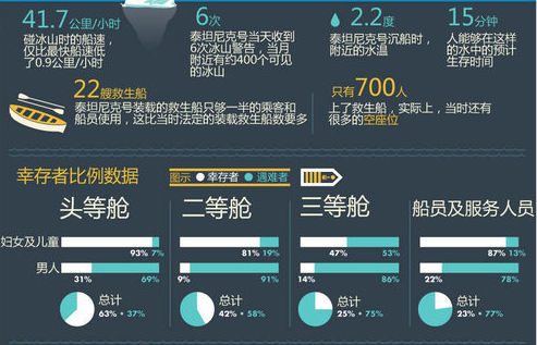 事故之後的統計也印證了這兩點:婦女兒童的倖存率,高於男性;頭等艙的倖存比例,遠高於二等艙和三等艙。