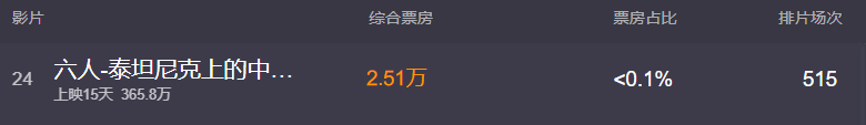 到上月底,上映半個月的《六人》的排片場次僅500多場,票房也只有300多萬。
