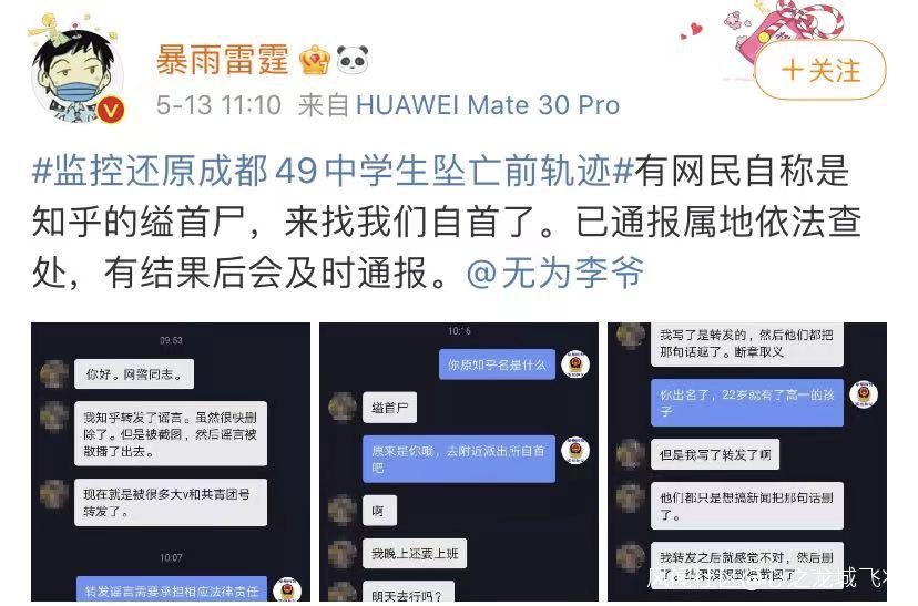 冒充成都49中家長?疑似知乎網友自首,警方回應_風聞