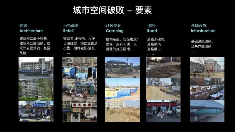 從19個不同的維度對建築、街道、綠化、道路、基礎設施等進行解剖和考量,據此建立了一個城市公共空間破敗評價系統,或者叫它**「醜度儀」**,以此來評估城市空間的破敗狀況。