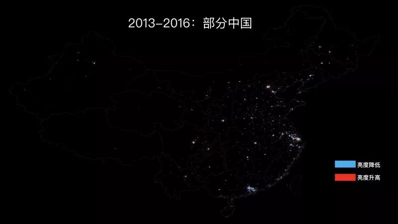 我們通過夜光影像發現,同樣是2000年到2012年間,陝西、山西、東北的部分地區已經在發生人口流失。