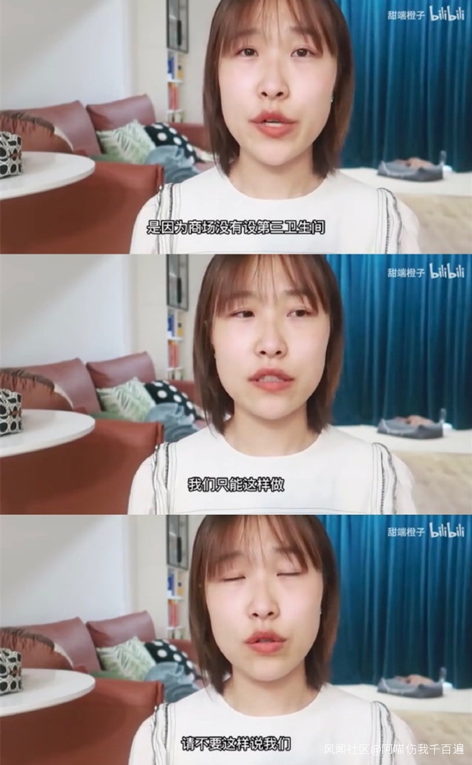 博主聽到這話很委屈,馬上衝到奶奶面前理論,“是因為商場沒有第三衞生間,我們只能這樣做,請不要這樣説我們。”