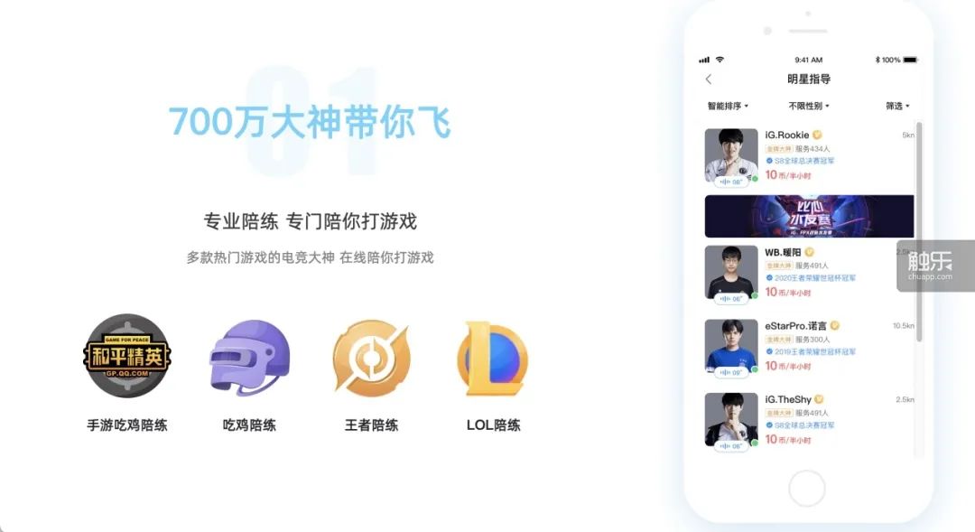 平台廣告上往往會出現職業選手,以表現陪練的專業性
