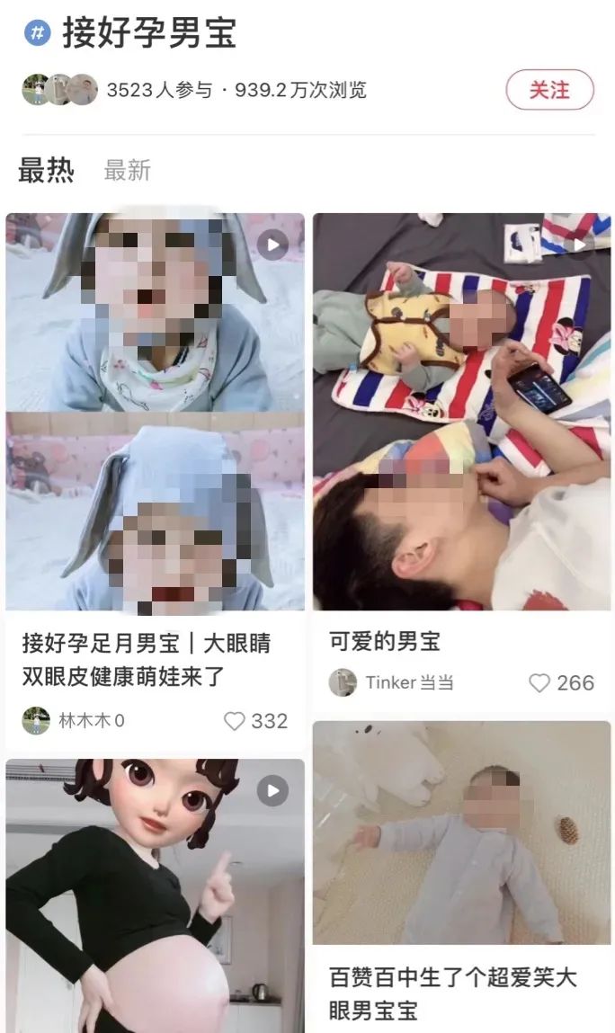 在女性用户佔多數的種草社區小紅書上,一場名為“接男寶”的行為藝術正在上演——有人發帖説自己生了兒子,評論就一水兒的接力“好孕氣”,祈求“生下男寶寶”。