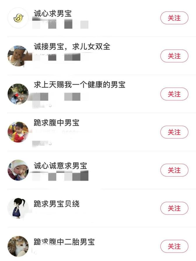 甚至不少小紅書用户,把ID名稱改成“誠信誠意求男寶”、“跪求腹中男寶”、“求上天賜我一個健康男寶”。