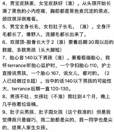 中級階段是走經驗主義,和生過男孩的媽媽對照身體表象,如清宮表、唐篩、腋下黑、胎心率、孕吐等情況,力求向男寶孕期症狀靠攏。